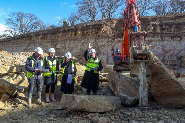 We welcomed the Dean of Salisbury Cathedral, The Very Revd Nicholas Papadopolus, to our Chicksgrove Quarry to select and bless the commemorative stone that will be part of the Salisbury 2020 celebrations of the 800th anniversary marking the foundation of Salisbury Cathedral and the development of the City.